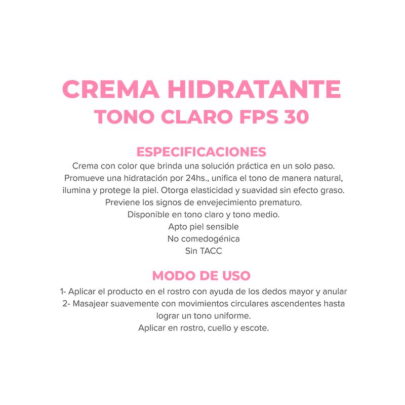 Promueve una hidratación por 24hs., unifica el tono de manera natural, ilumina y protege la piel. Otorga elasticidad y suavidad sin efecto graso. Previene los signos de envejecimiento prematuro.
