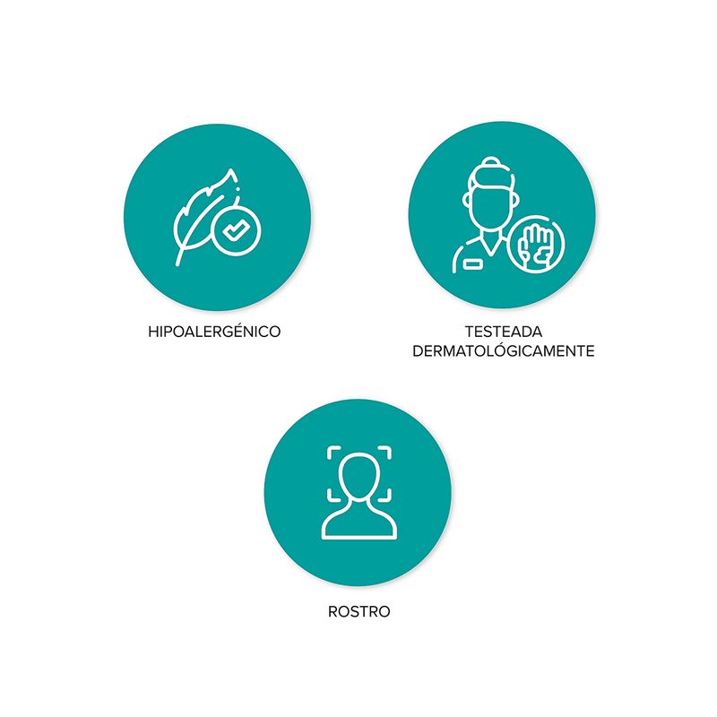 Contiene vitamina A que repara los tejidos otorgando elasticidad e hidratación cutánea. Antioxidante. Vitamina E, que retarda el fotoenvejecimiento. Antioxidante. También contiene Pentavitim ™, que regula la humectación bajo condiciones secas, donde otros humectantes pierden efectividad. Y Dry flo PC que absorbe el exceso de oleosidad en la piel.
